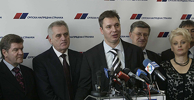 Obrisi te podle prevare vec se nagovestavaju u reagovanjima nasih politicara. U tom pogledu najvise je otkrio Tomislav Nikolic, koji se trudio da sto manje kaze. Kao celnik Srpske napredne stranke, on je bio na radnom rucku sa Gvidom Vesterveleom, na kojem su jos bili predstavnici DS-a, G 17 plus, SPS-a i LDP-a, cime su Nemci hteli da stave do znanja ko jos, pored njihovih sadasnjih miljenika, moze uci u buducu vladu. Od sadasnjih opozicionih stranaka to, po njima, jedino mogu „naprednjaci“. Namerno nisu pozvali Jovana Krkobabica i Dragana Markovica Palmu iz koalicione vlade i Velimira Ilica iz redova opozicije, koji vec uveliko nudi svoju „evropsku orijentaciju“, tek da stave do znanja da jedna velika zemlja, kakva je Nemacka, ne razgovara neposredno s koalicionim prisipetljama.