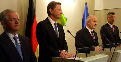 Nemacki sef diplomatije Gvido Vestervele saopstio je zvanicnom Beogradu, ono sto se moglo naslutiti jos 1999. godine, a sto je bilo ocigledno 2001. godine: da Srbija navodno moze racunati s evropskom perspektivom samo ako u dogledno vreme prizna nezavisnost samozvane kosmetske drzave i da u narednih 10 godina nasa zemlja uopste nece uci u EU cak i ako prizna ovu novu „drzavu“