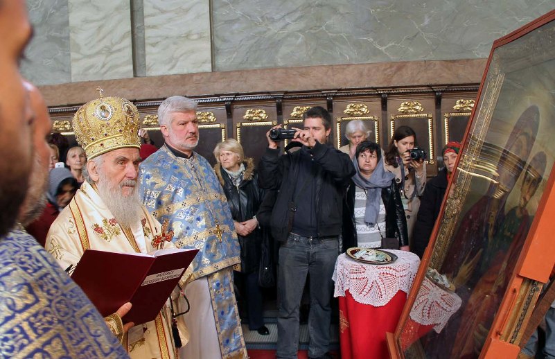 Патријарх држи молебан пред иконом Благовестне литије: