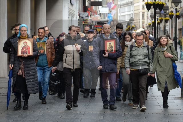 8. Благовестна литија за живот, породицу и рађање на старој релацији: Саборна црква – Народна скупштина – Храм Светог Саве, на велики Православни празник Благовести 7. априла након Литургије, са благословом патријарха Порфирија. 2020. године у Србији је било 55,000 више умрлих него рођених, а 2021. смо достигли рекордни минус од чак 70,000! Један од главних разлога је велики број абортуса, један од највиших по глави становника у свету, према још увек важећем Титовом закону из 1952. године, којим су деца у утроби мајке лишена права на живот. Више од половине деце која се Божијом милошћу и силом зачну у Србији бивају убијена абортусима. То је страшан грех који нас води у нестанак са лица земље. Васкршњи пост је право време за покајање, пост, молитву и литију. Крајње је време да престанемо са колективним самоуништењем. Литургија почиње у 9 сати, а литија око 10:15. С нами Бог. На слици патријарх Порфирије после Литургије у недељу 27. марта у Храму Светог вазнесења Господњег у Жаркову одакле је и потекла, покренута Благовестна литија. Благовестну литију су благословили патријарси Иринеј и Порфирије.