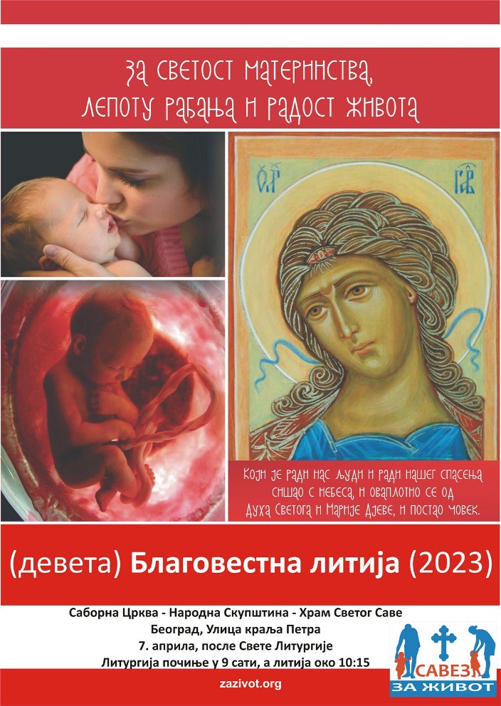 11. Благовестна литија за живот, породицу и рађање одржана је на старој релацији: Саборна црква – Народна скупштина – Храм Светог Саве, на велики Православни празник Благовести 7. априла након Литургије.