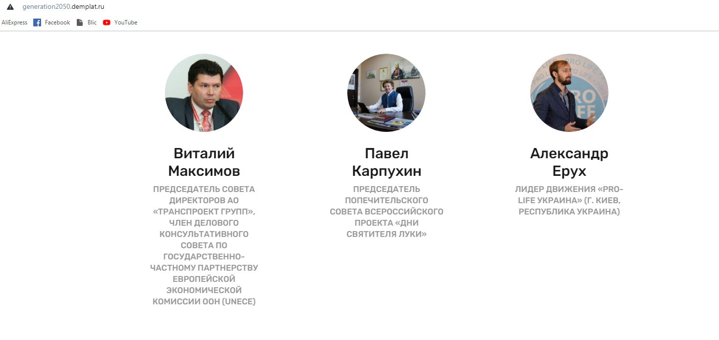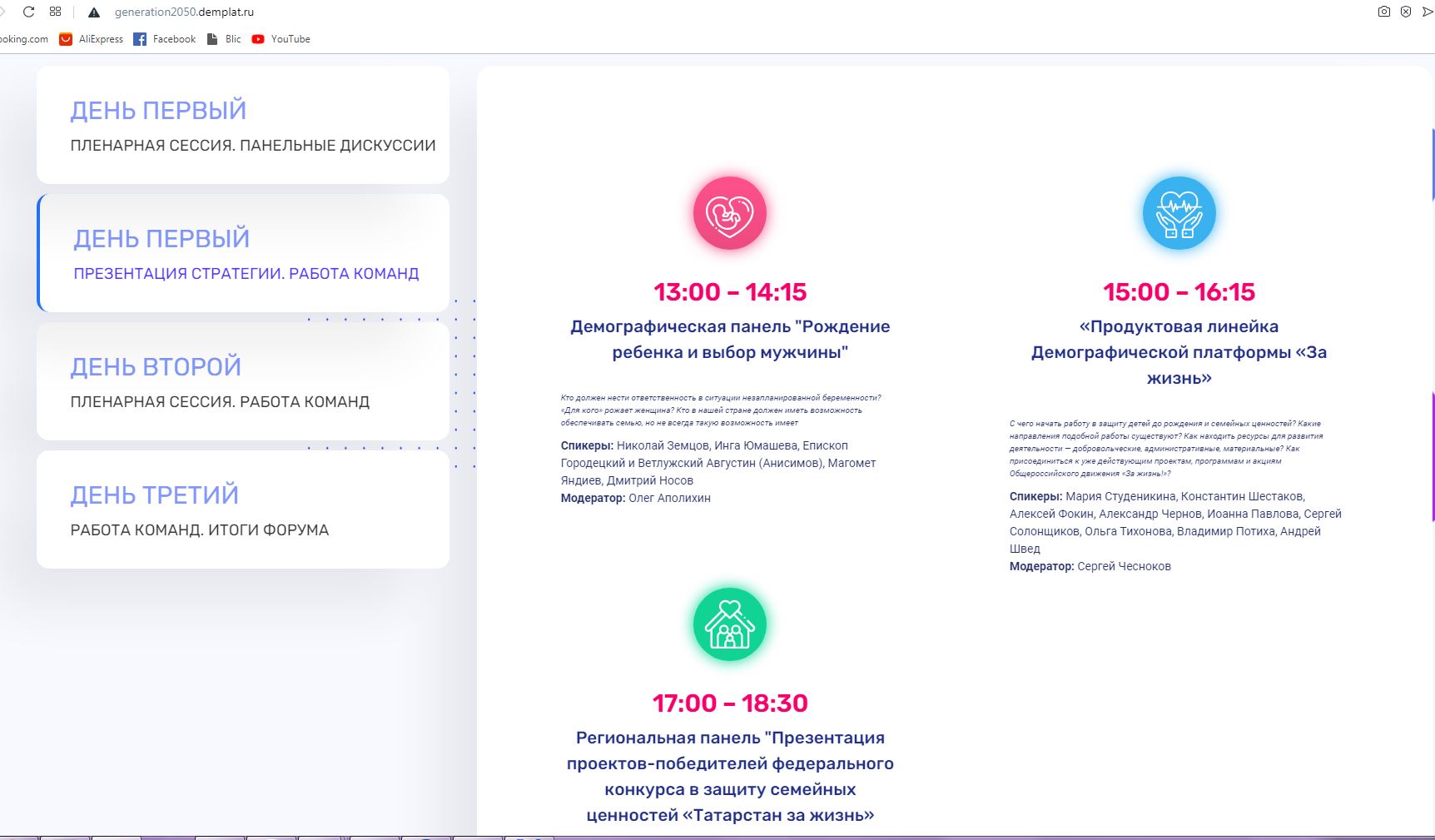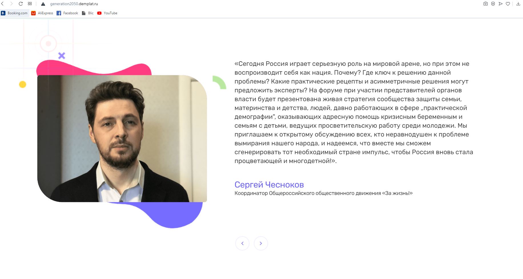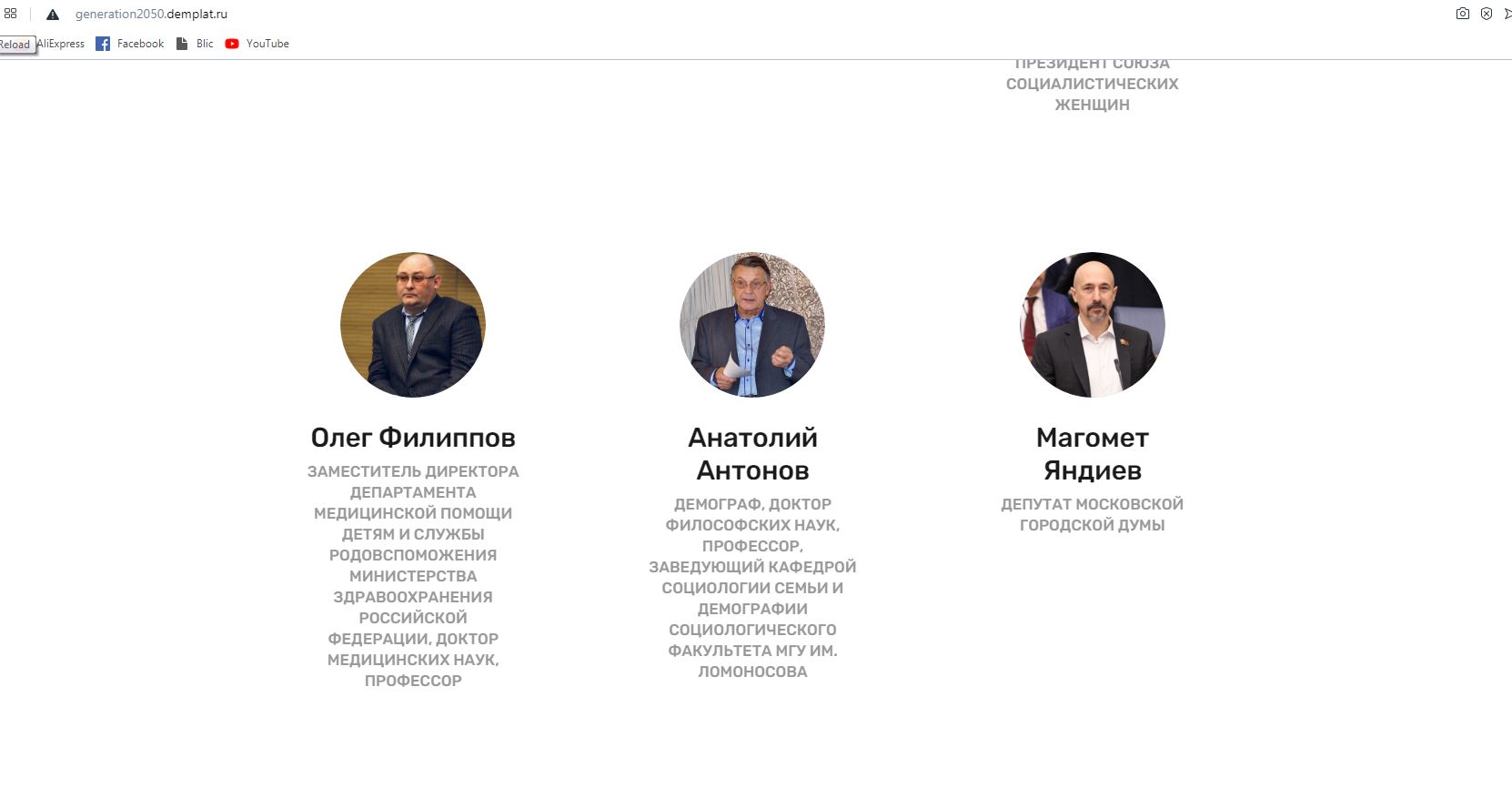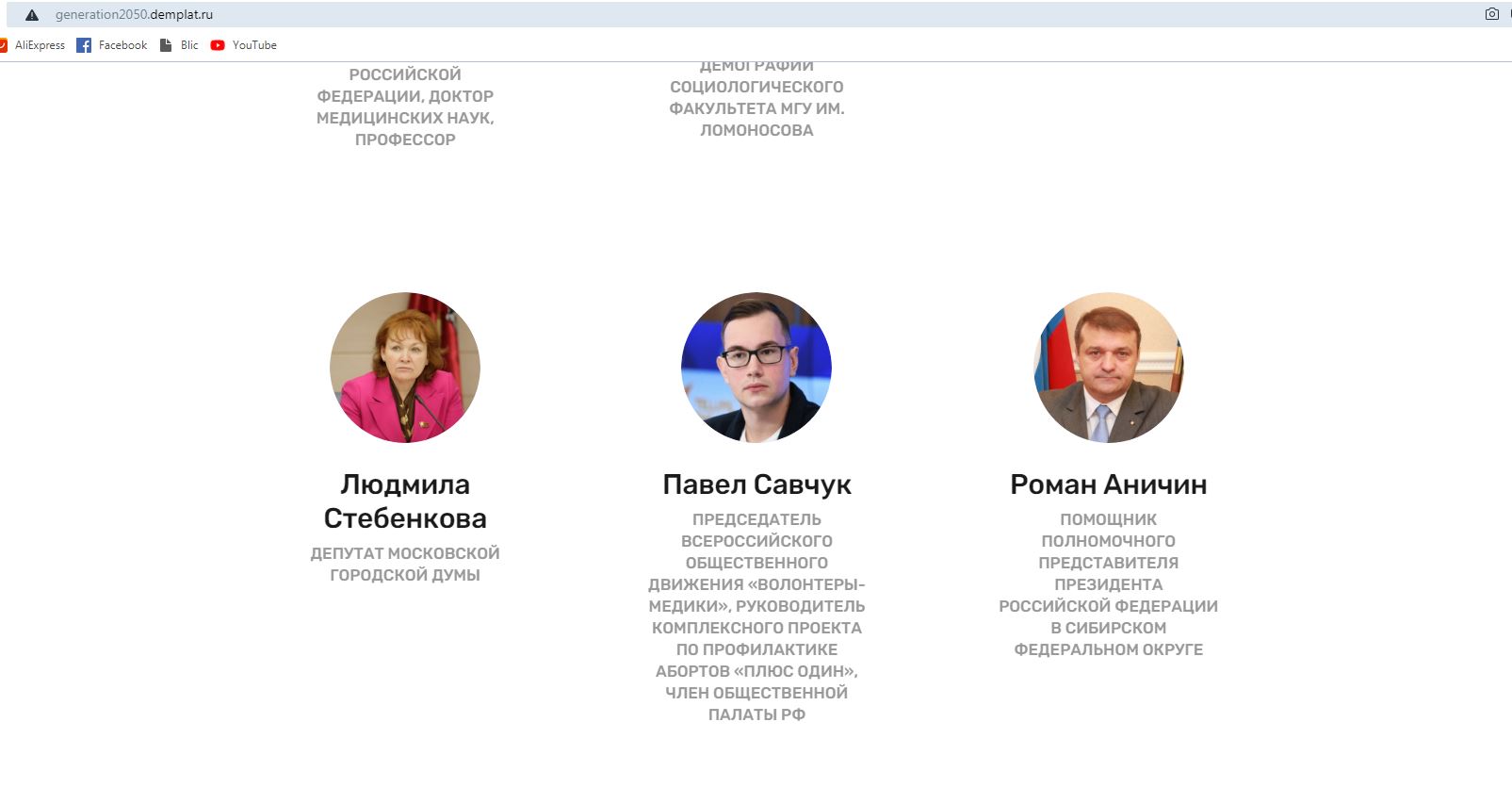 Велика руска тродневна демографска конференција "Генерација 2050" у Москви од 14. до 16. децембра. Конференција је он-лајн, водитељ међународног панела је депутат (посланик) Инга Јумашева. Директан пренос, стриминг на youtube у понедељак 14. децембра преко линка, наш панел је од 3 сата по нашем времену: https://youtu.be/8KM90t1cs0M Центар транслације првог дана је Технопарк Сколково, један од највећих и најмодернијих научних центара Русије.
