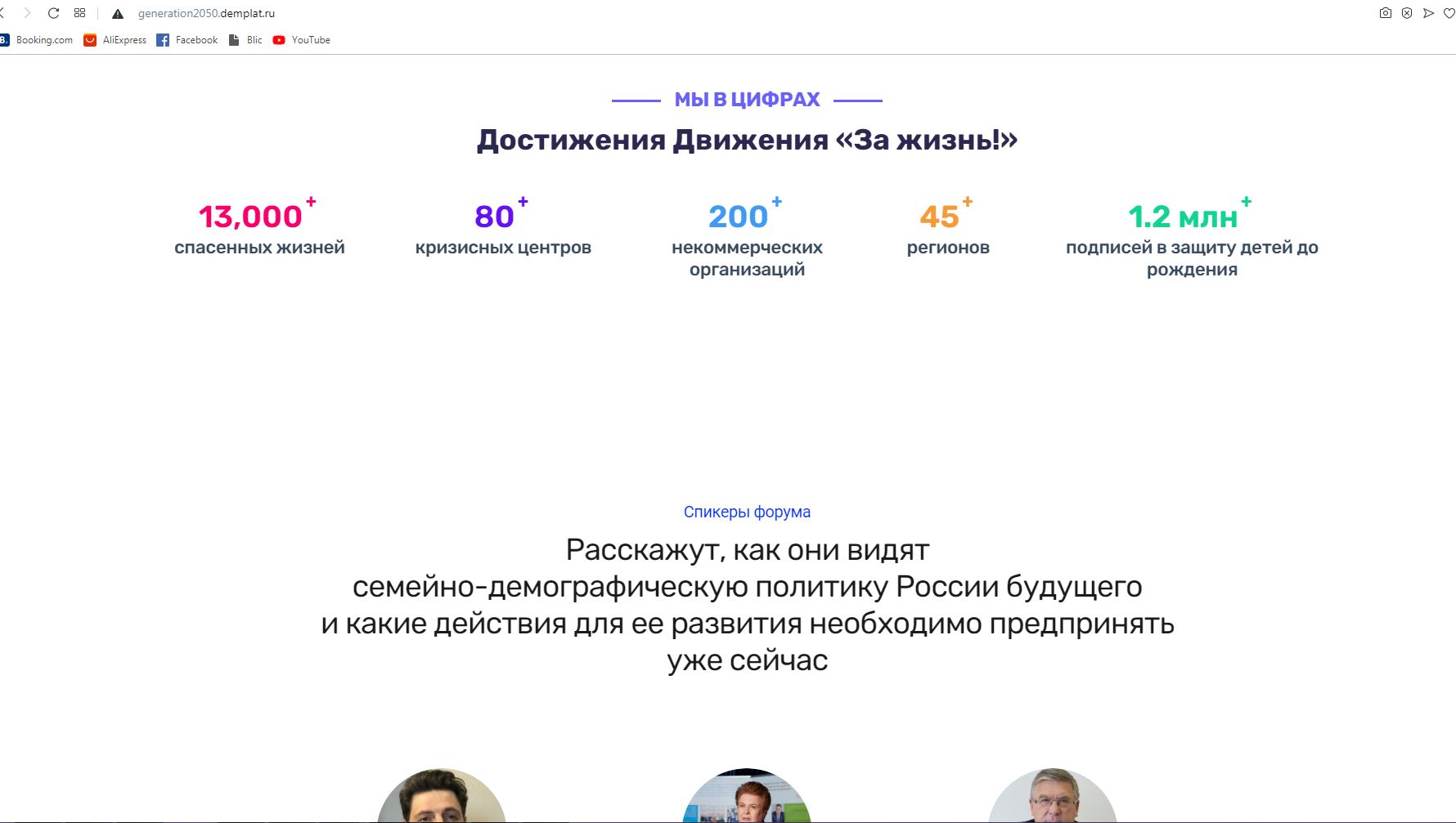 Ово је једна од највећих или највећа конференција о демографији у свету ове године. Иза ње стоје руска држава, Газпром, породично-патриотски невладин сектор, итд. Савез за живот 14. децембра треба да укаже на то да су проценат трудноћа прекинутих абортусом и узраст при ступању у брак међу кључним чиниоцима наталитета земаља. |