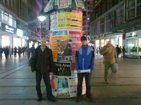 Слике са терена:Плакат испред Народне скупштине у Улици краља Милана: