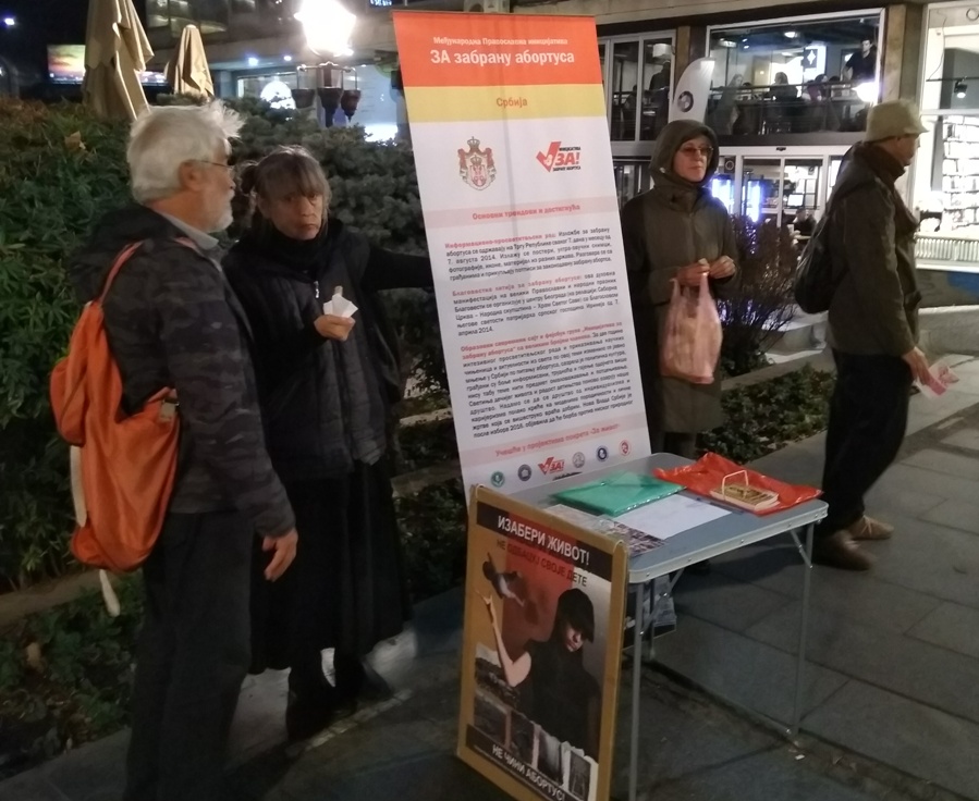 Изложба уочи Митровдана 11.11.2018. По прохладном времену настављене су активности за заштиту људског живота од зачећа. Још увек је велико незнање наших грађана о овој врло важној теми, а и присутна је лоша особина да се заузимају тврди ставови о питањима о којима врло мало знамо. Разговором се може много тога променити: могу се отворити нови погледи на проблем, добити информације, чути искуства других људи, сазнати став Цркве, итд. Страх остаје један од главних разлога за абортус: страх девојака и жена да неће моћи да обезбеде свом детету све што је потребно, због чега се често одлуче на прекид трудноће.