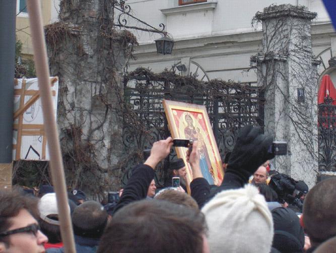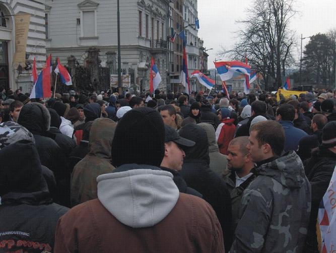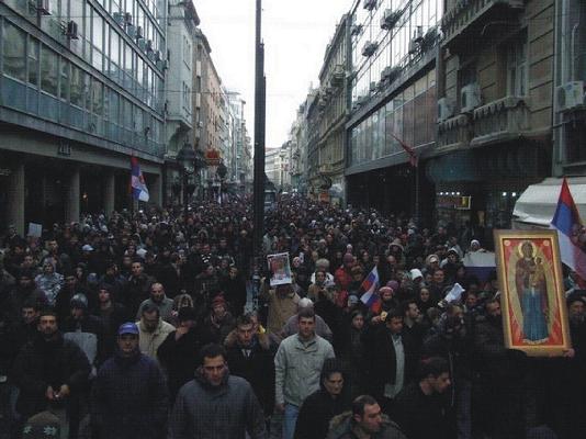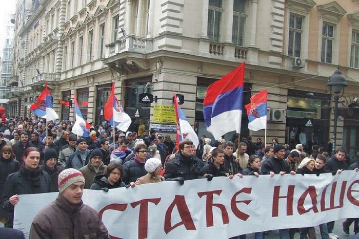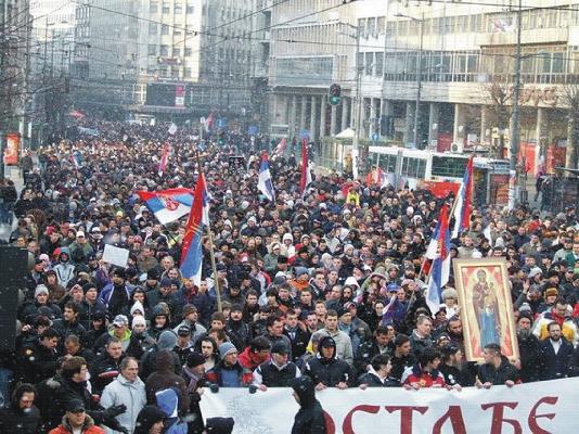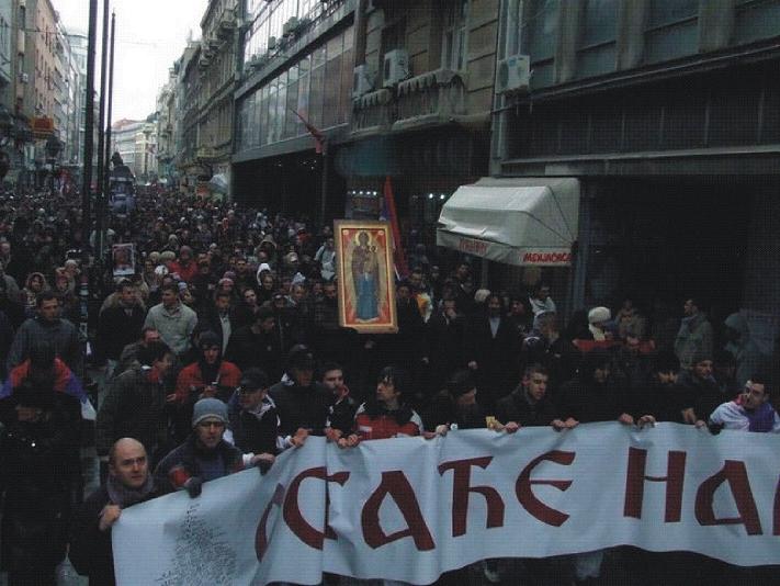 Мисија Европске уније на Косову и Метохији је директно кршење суверенитета и територијалног интегритета Србије и почетак спровођења одбаченог Ахтисаријевог плана о надгледаној независности јужне српске покрајине. Мисија Европске уније без одобрења Србије и Уједињених нација је вид агресије и окупације. Европска унија се отворено спрема за признање независности Косова и Метохије чиме крши основна начела међународног права, нарушава кредибилитет међународних установа и дестабилизује читав регион. Мисија Европске уније охрабрује тероризам и активира сепаратистичке кризе у целом свету. Мисија Европске уније је коначни слом евроатлантских интеграција у Србији и повлачи преиспитивање свих односа према земљама ЕУ. Крајње је време да станемо у одбрану поноса и достојанства српског народа и сваког грађанина Србије. Ко ако не ми – кад ако не сад? За нашу свету земљу! Будимо јединствени, будимо истрајни! Скуп су организовалa бројна српска родољубива удружења: Српски сабор Двери, Наши – Аранђеловац, Свесловенско књижевно друштво, Друштво пријатеља манастира Ђурђеви Ступови, Удружење студената Правног факултета Номоканон, Хуманитарна организација Браниоци отаџбине 1998-1999, навијачке групе, Српски синови и Српски народни покрет 1389, уз подршку других бројних патриотских медија и организација, нека не замере они који нису поменути, Бог ће их наградити. Утисци су прелепи, али помућени потпуно догађајима следећег дана. Најбитније, показали смо слогу кад је најбитније, одлучност и снагу. Окренули смо леђа председавајућем Европске уније и окренули се ка Храму Светог Саве, српски народ се враћа Богу, обнавља Завет и узима свој Крст - Косово и Метохију,... негде у даљини чују се звона... наша престоница је посвећена Пресветој Богородици, а наш народ Господу Богу. Још једном су западне земље разбиле нашу илузију да смо савезници, нама Православним Хришћанима је забрањено да мрзимо, нека им Бог опрости. Тамо иза пунктова, тенкова и бодљикавих жица у Бањској, Грачаници, Дечанима, монаси се моле за цео свет. РЕПОРТАЖА НА CNN-у...погледајте http://www.youtube.com/watch?v=4fEkvhyG6Nk...погледајте РЕПОРТАЖА НА "RUSSIA TODAY"...погледајте