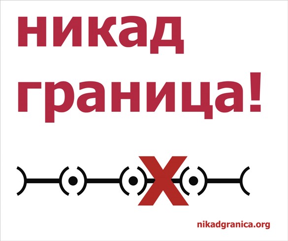 Никад граница са Косовом и Метохијом Саборна иницијатива родољубивих удружења Активности: Позив 4 општине са севера КиМ на протест 10. маја 2013. - детаљније Издаја није шала - детаљније Ход заветног сећања 24. марта 2013. - детаљније Сретењски сабор - детаљније Поворка сећања 17. марта - Заветници - детаљније Јавно спаљивање бриселског споразума – фото и видео - детаљније Погранична рампа у центру Београда - "Улица затвореног срца" - детаљније Посета иницијативе Никад граница! Пећкој патријаршији - детаљније Рампа царини испред Владе Србије - детаљније Срби на Косову и Метохији против Брисела ("Стоп бриселским обманана и преварама") - погледајте Забрањен скуп Никад граница испред Скупштине - детаљније